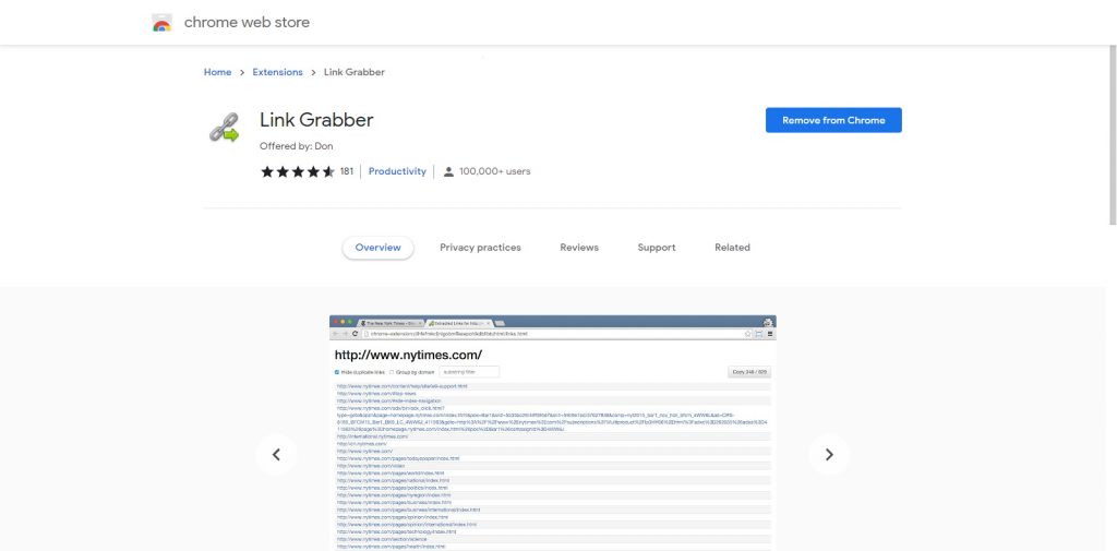 The extension’s main goal is extracting links from an HTML page and displaying them in another tab. It is very simple and useful. Just click on the extension from the Google search result page, and all the links on the page will be displayed in front of you.
