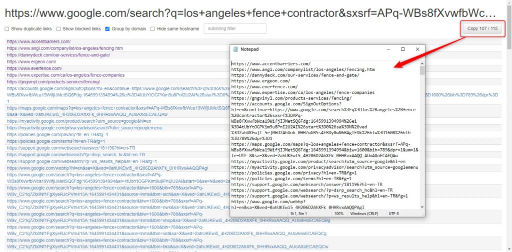 You can collect all these links in notepad. Finally we will clean up all these links, delete the duplicates and make them ready to scrape.