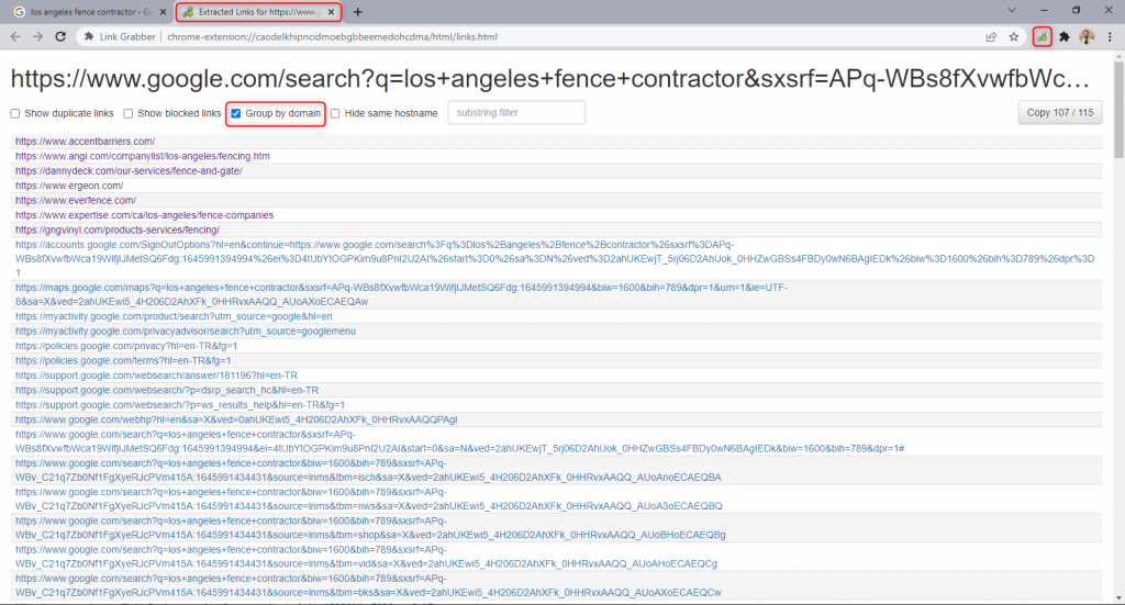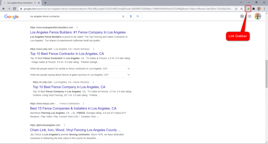 At Marketing Hackers, you know that we love to talk about real life with use cases. Let’s do it again and choose a scenario. Our goal is to do email marketing to Fence contractors in Los Angeles. First, let’s grab the web addresses of businesses with Google Search with Link Grabber.