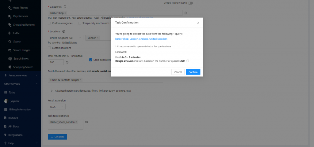 Outscraper has already started collecting data from all barbers instead of us. Meanwhile, you can focus on our other work.